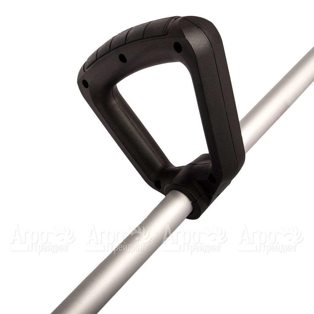 Отдельного внимания заслуживает разъемная штанга, облегчающая транспортировку и обеспечивающая компактное хранение инструмента. С целью предотвращения внезапного запуска устройства предусмотрена специальная защитная кнопка. В свою очередь, комфорт при работе пользователя достигается благодаря эргономичным резиновым накладкам на рукоятки. Корпус из высокопрочного пластика гарантирует продолжительное использование устройства.