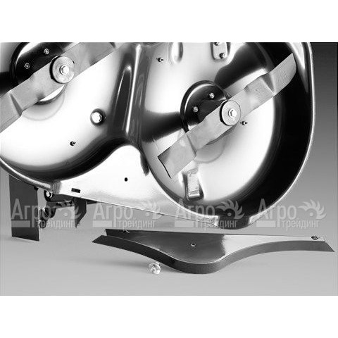Режущим механизмом является дека с двумя ножами, работающая в режиме мульчирования, при котором трава превращается в мульчу, и в режиме быстрого скашивания с выбросом позади, такой режим удобен для обработки больших площадей, на участках, где трава давно не скашивалась. Конструкция райдера устойчива, плавно передвигается и эффективно выполняет свои функции, как на участке с ровным рельефом, так и имеющий склоны, за счет низкого расположения центра тяжести, пневматических колес с широкими шинами и заднему приводу колес. Рабочее место устроено с максимальным комфортом для пользователя: отличная видимость процесса работы, рычаги управления расположены в зоне досягаемости руки, есть подстаканник. Работающий двигатель не создает неудобств, т.к. его расположение находится позади оператора. Райдер удобен для проведения ремонта или обслуживания благодаря откидной крышке капота и свободной доступности к обслуживаемым элементам, крышка у топливного бачка имеет внешнее расположение.